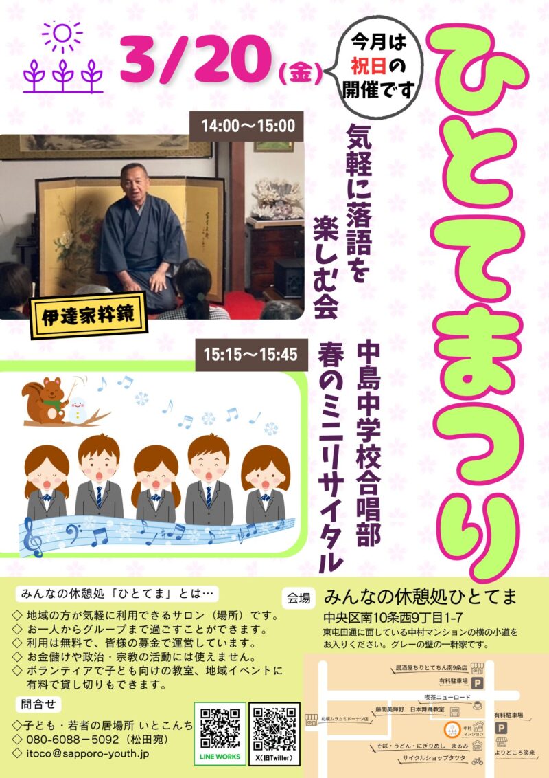 3月は20日の金曜日(祝日)に開催します